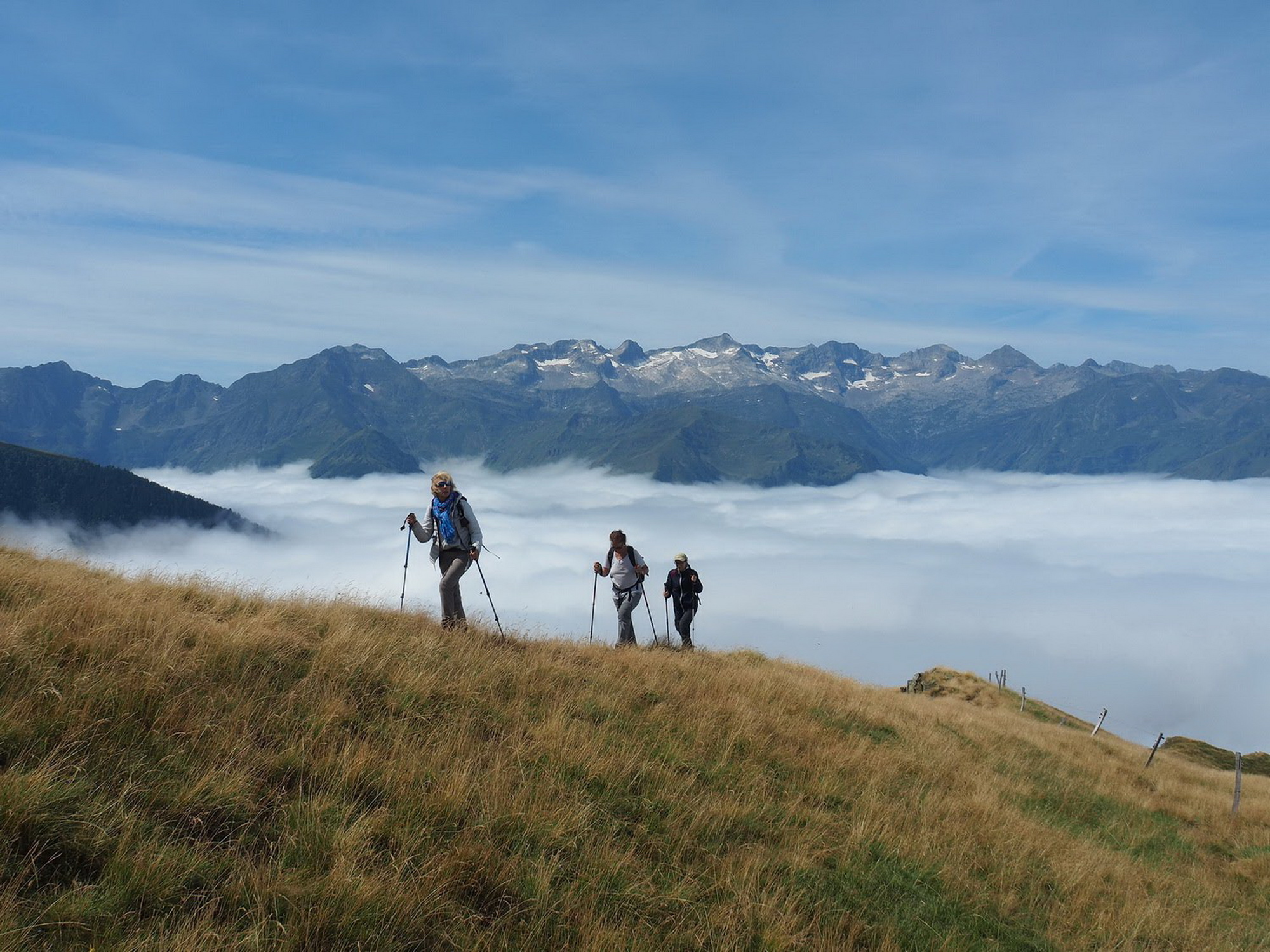 Randonnée entre estives et forêts, pour rejoindre le GR10 au dessus du village d’Artigues. Ascension vers la crête frontière pour entamer la descente jusqu’à Bausen vers la Liberté!